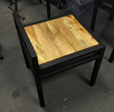 Un peu d'acier, de bois, de peinture et d'huile de coude ont donné naissance à cet ensemble composé d'une table, 4 chaises et d'un banc de 2 places.
